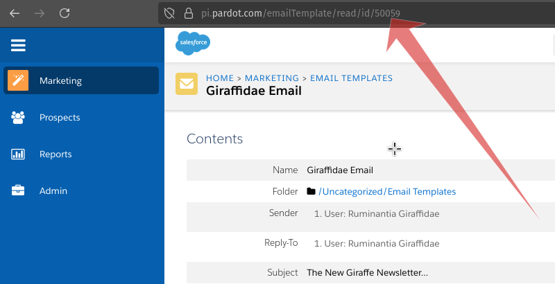 If you have the object open in Pardot, however, you can often find its ID simply by looking at the URL which references it.